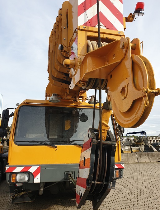 Mobile cranes are cable-controlled cranes mounted on crawlers or rubber-tired carriers or a hydraulic-powered crane with a telescoping boom mounted on truck-type carriers or as self-propelled models. Mobile cranes generally operate a boom from the end of which a hook is suspended by wire rope and sheaves